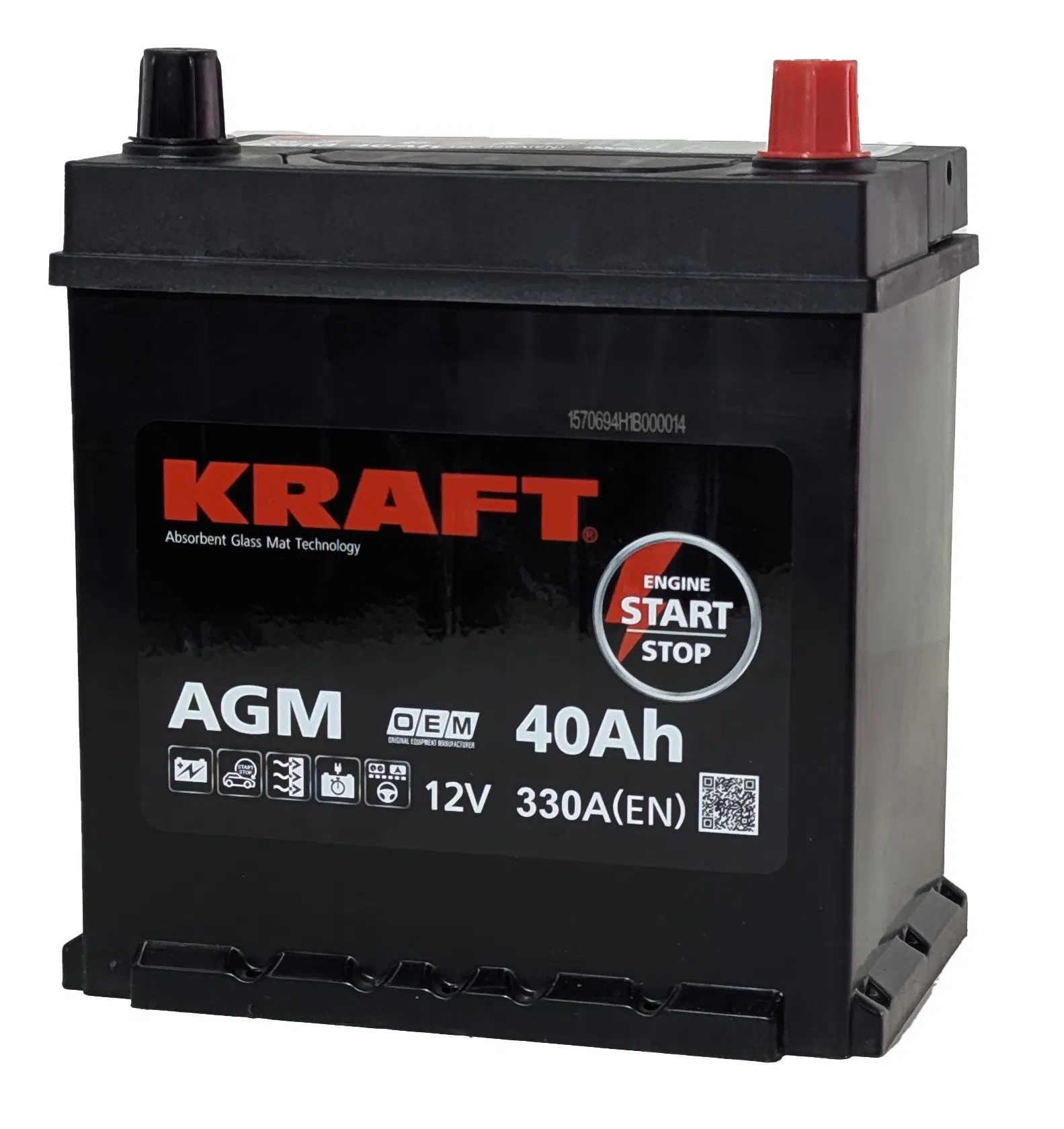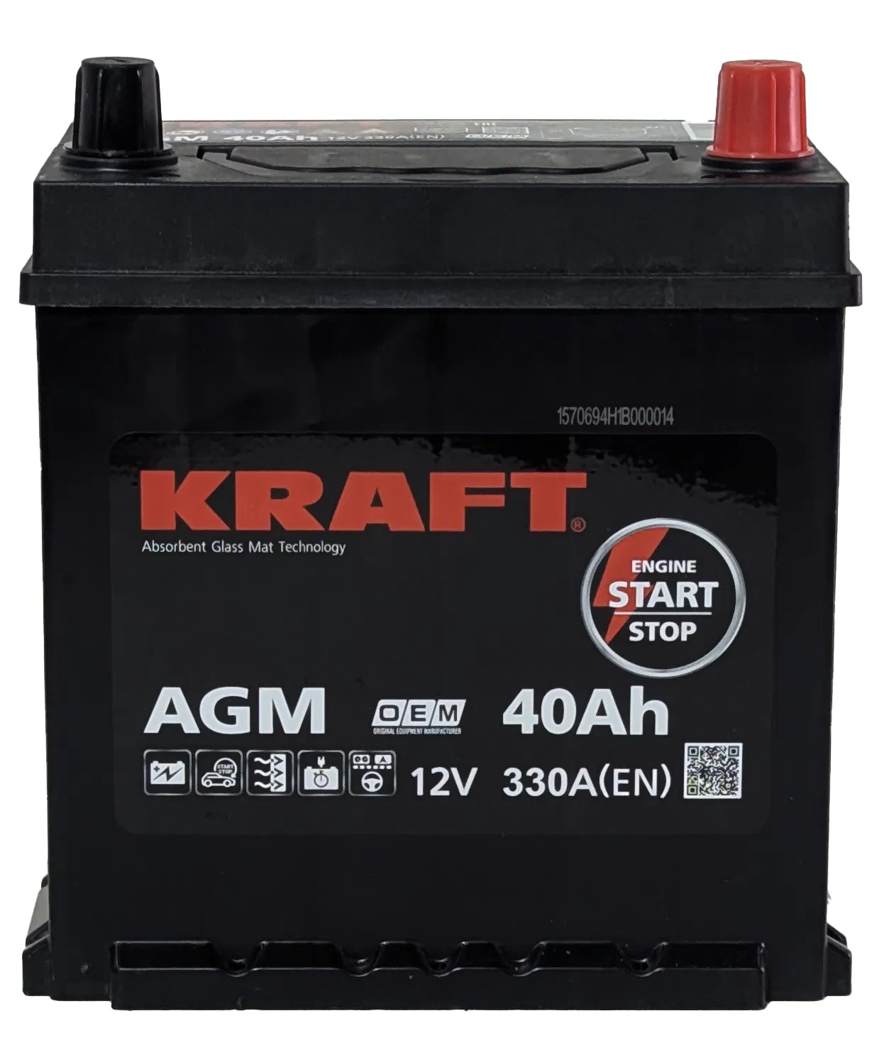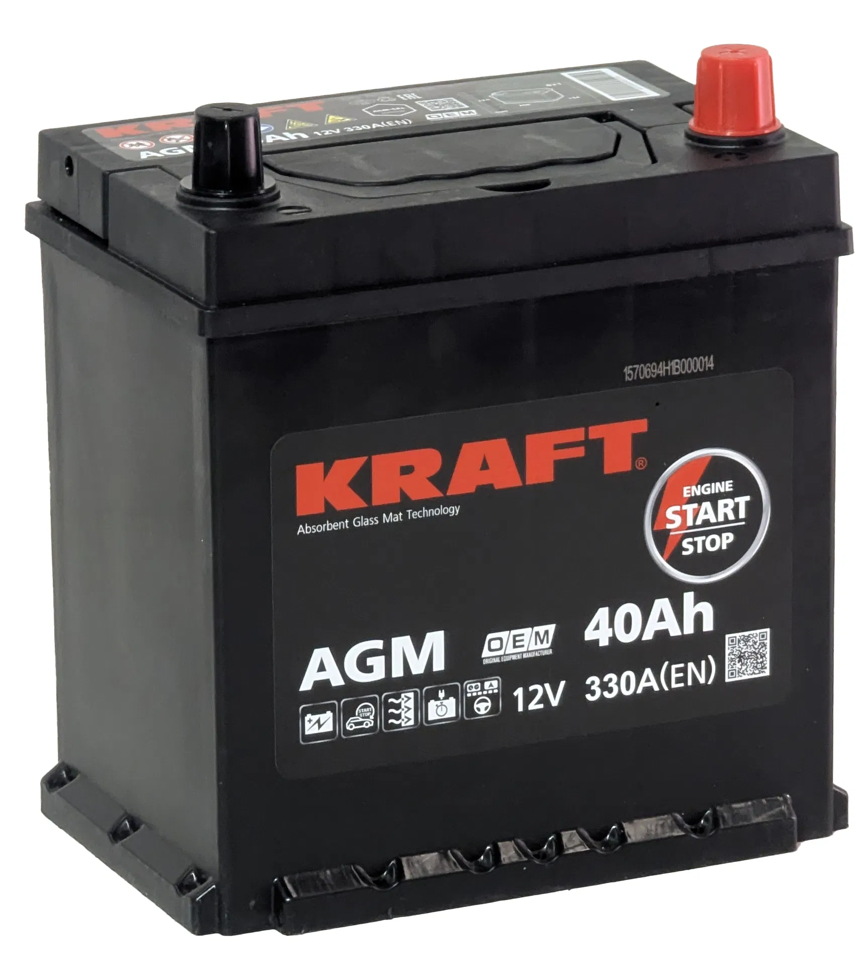 Аккумуляторная батарея KRAFT AGM ASIA 40Ah 330A R+ борт