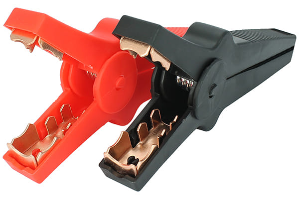 Крокодилы для зарядки аккумулятора с анодированным покрытием и изолированными ручками.